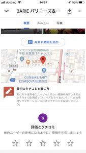 Googleマップアプリを開き『末広町 バリィ』で検索して、